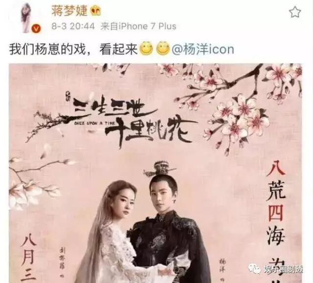 蒋梦婕发微博支持杨洋,并且称呼很亲昵,然后艾特杨洋。