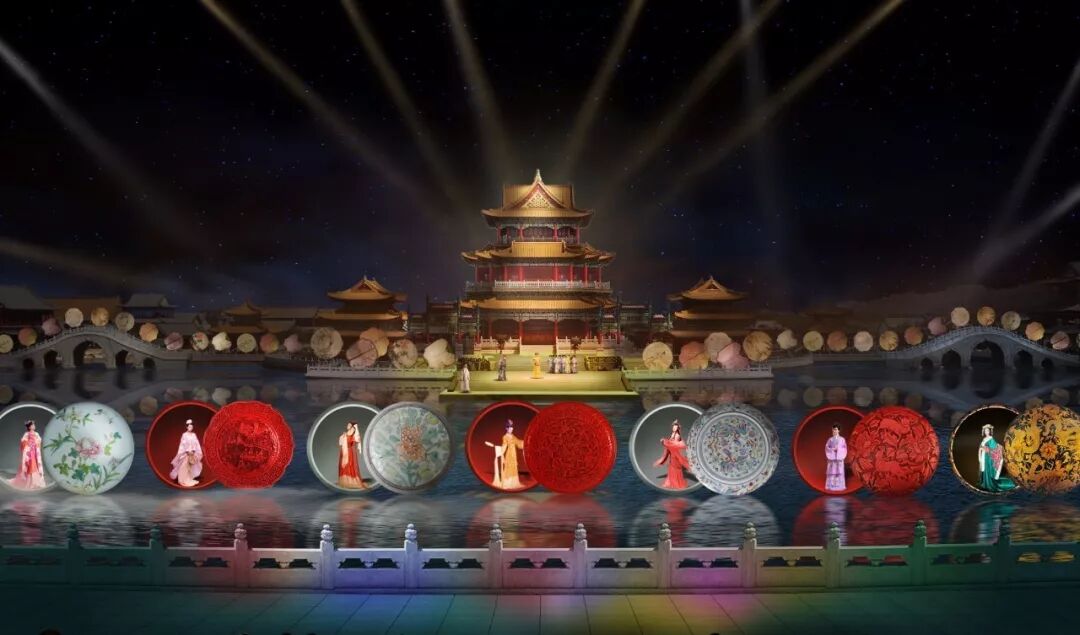“正大光明”“勤政亲贤”“鸿慈永祐”“山高水长”“月地云居”“九洲清晏”等宫廷园景渐次展开,殿金碧,堂辉煌,花绵绵,树荫荫,亭绕廊环,石叠水曲。