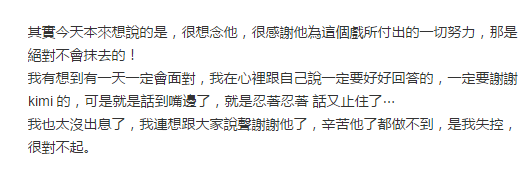 我有想到有一天一定会面对,我在心里跟自己说一定要好好回答的,一定要谢谢kimi 的,可是就是话到嘴边了,就是忍着忍着话又止住了…