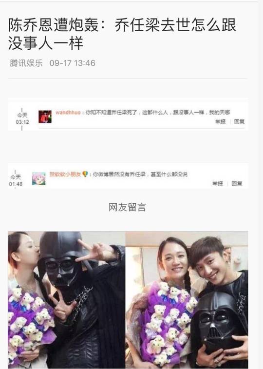 要知道,乔任梁去世的时候,陈乔恩因为在痛苦中没有发微博,就被不少键盘侠骂“跟没事人一样”。