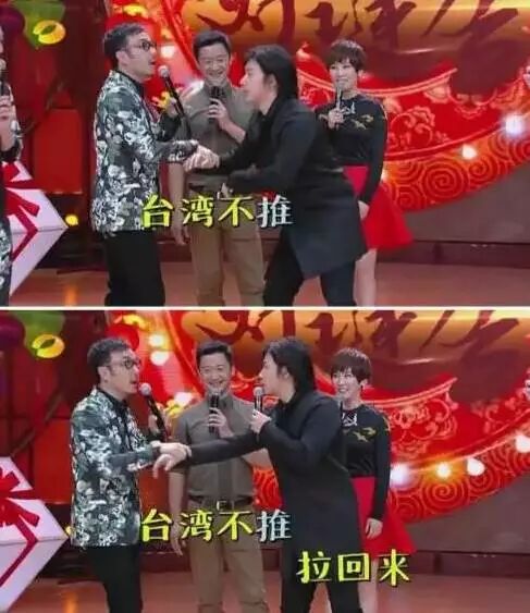 当时吴京说打太极,有的老人可以把年轻人推很远,大家就开玩笑说,是不是直接可以把人推回家。这时欧弟也来了,说自己家在台湾,还开玩笑说有点远,得多推几次。汪涵说,“台湾不推,台湾得拉回来。”一席话避免了之后有可能会面对的争议,十分得体。