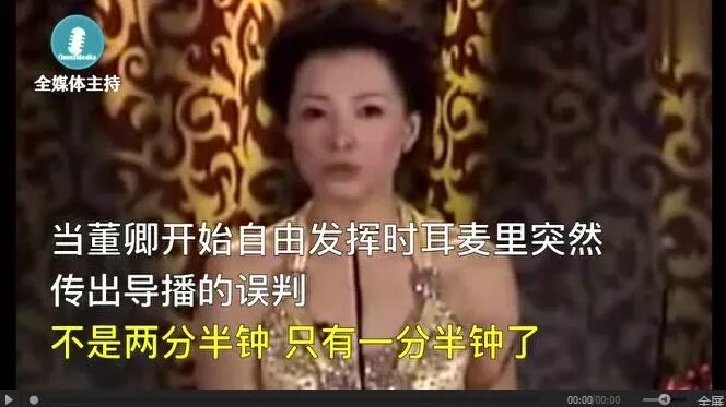 当董卿开始自由发挥时,耳麦里又突然传出导播的声音:“不是两分半钟,只有一分半钟了!”董卿连忙调整语序,准备结束语,而此时耳麦里再度传来更正:“不是一分半,还是两分半!”