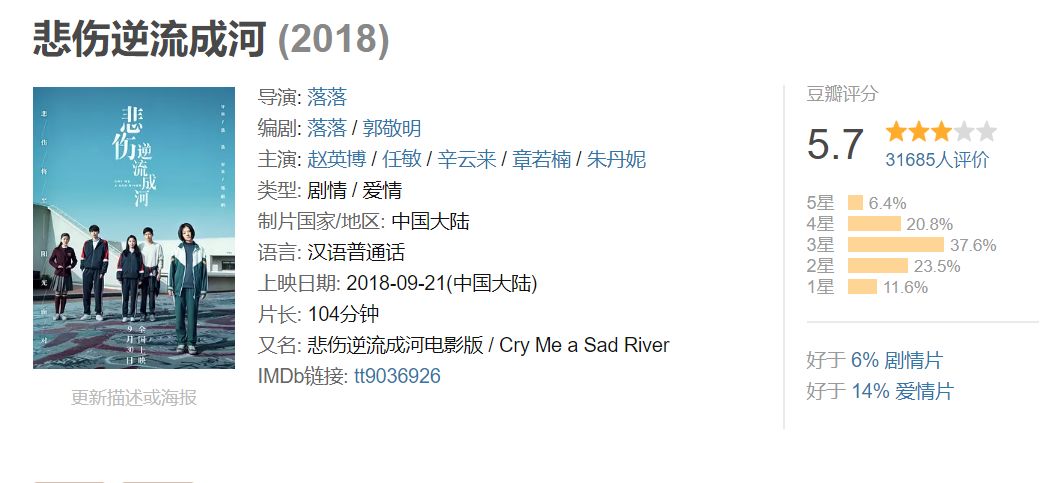 这一回的《悲伤逆流成河》,被称为“青春疼痛式”作品,赢得了不少观众的共鸣。豆瓣上有这样一则简评: