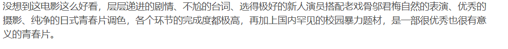 电影稚嫩青涩的演员、缓慢递进甚至些许尴尬的情节,很难说这是一部好电影,但是和同一类的青春电影作比较,它并不差。