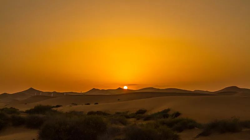 许多人热衷于收藏日出日落,在山上、在海边、在岛上、在草原……但沙漠里的日出日落不同寻常,因为背景简单,反衬得一轮红日是如此的炽热纯粹。