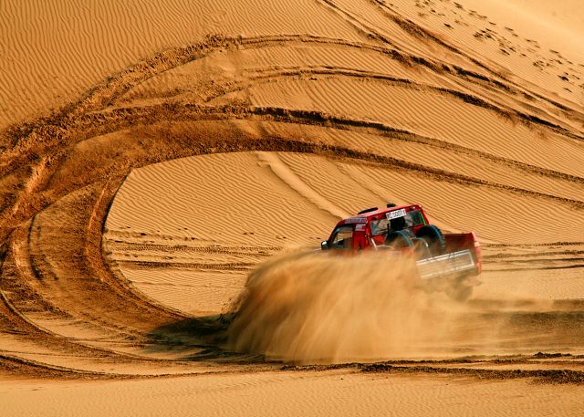 载满游客的强动力越野车驰骋在浩瀚无垠的大沙漠,时而爬上沙脊,时而俯冲谷底,惊心动魄、刺激过瘾、有惊无险。参与沙海冲浪会最大限度地体会到挑战极限、放飞心情的愉悦。