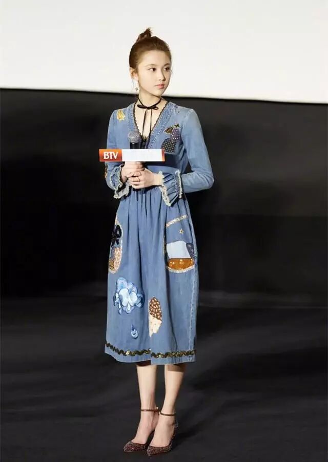 深V牛仔连衣裙的设计元素也是满满的少女风,头发扎起显得十分的清纯干净,这身打扮也非常的显年轻。