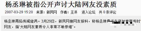 然而这并没有结束,在2007年3月的时候,曾有媒体报道20杨丞琳在新加坡进行宣传时“声讨”大陆网友,甚至还说出“大陆网友素质令人非常不敢恭维”的话……