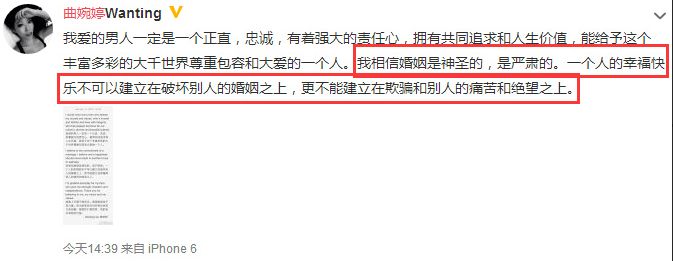 不过曲婉婷当时是发了微博,澄清自己并不是小三。