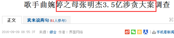 在2014年,曲婉婷妈妈因涉嫌贪污、受贿与滥用职权三项犯罪被逮捕调查。涉嫌贪污的资金不少,3.5亿。