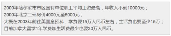所以我们可以看看,2000年哈尔滨国有单位职工最高年收入不到1万,曲婉婷就可以到加拿大留学花费几十万了。