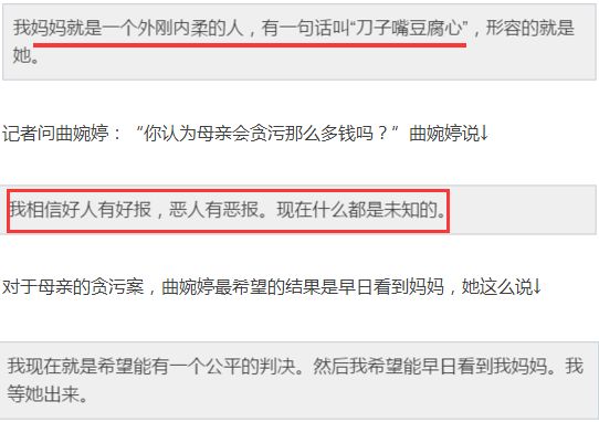 可以说曲婉婷的妈妈做的这些事,干的这些勾当,弄的这些钱,有一部分是从老百姓身上榨出来的血汗钱。