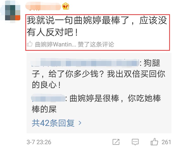 而曲婉婷在微博上为自己妈妈争辩有问题吗?也没有问题。