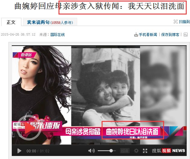 曲婉婷说自己妈妈被抓进去后天天以泪洗面,然而她在她妈妈出事之后几个月,就谈起了恋爱,而且秀恩爱还秀的很高调。