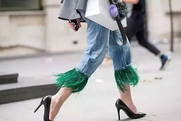 曾经的裤脚都以平整为美,然而现在流行的居然是不锁边的裤脚,细细散散的小毛边,披散在裤脚周围,与鞋子交错着,风一起便像流苏一般有着复古的美感。