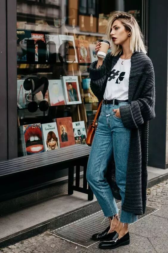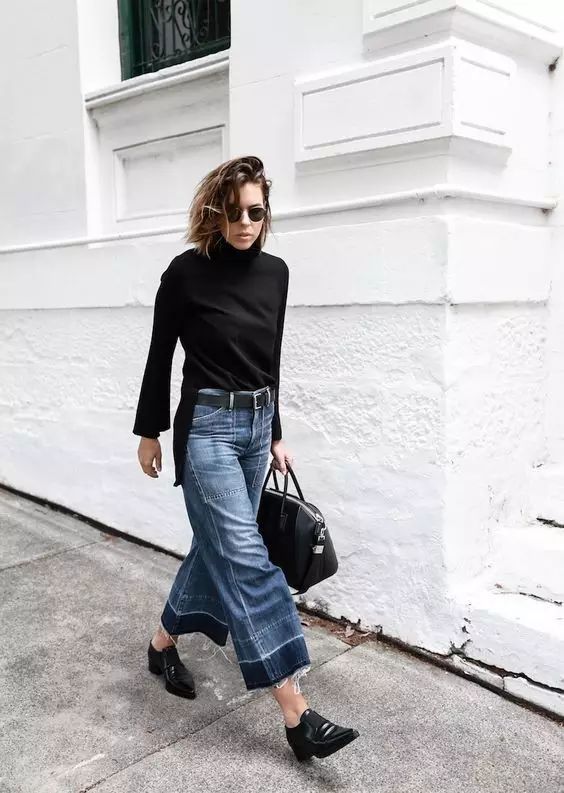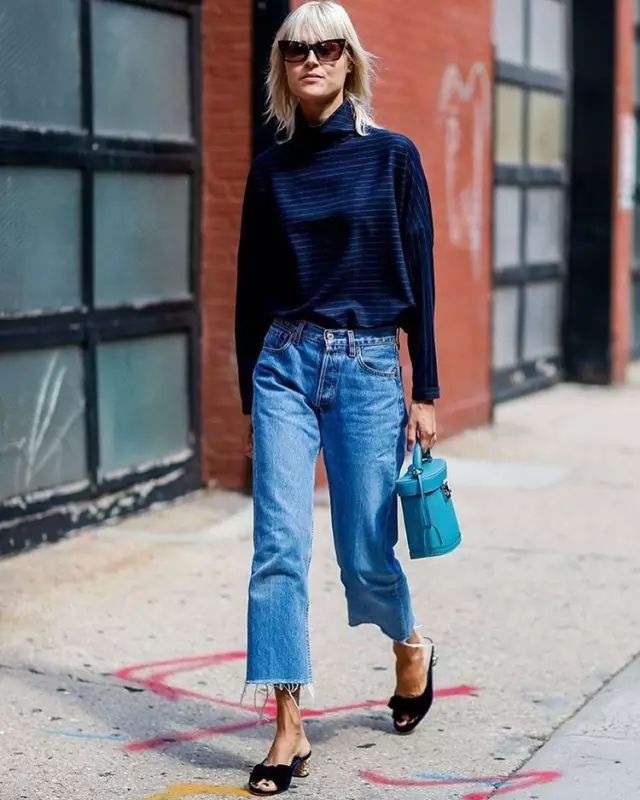左右不对称的裤脚会让整个人凸显出一种微妙的层次感,毛衣+牛仔裤也能让你出挑满分。