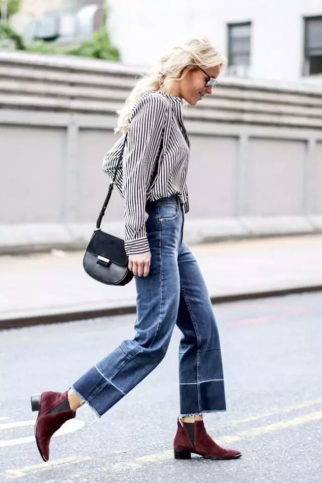 去年开始兴起的微喇裤配上撕边也是好看的不要不要的,多了一丝复古任性的感觉,很抢眼又帅气,趁着微喇风没过,快快入手吧~