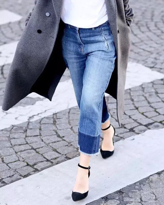 拼色裤脚其实还常常与撕边一起出现,随意一个街拍居然都有着浓浓的文艺味道。搭配芭蕾鞋真的出奇的美~