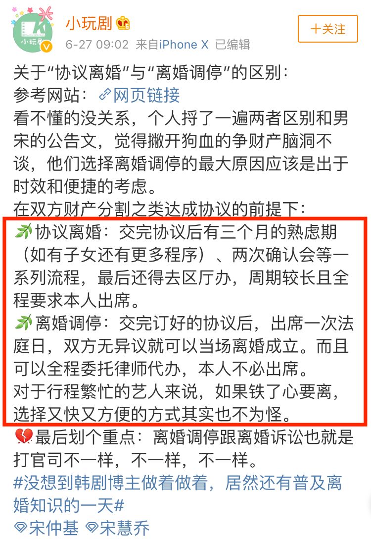 离婚调停申请是宋仲基提出的,离婚消息是宋仲基主动曝光的,一经传出,瞬间引爆热搜。