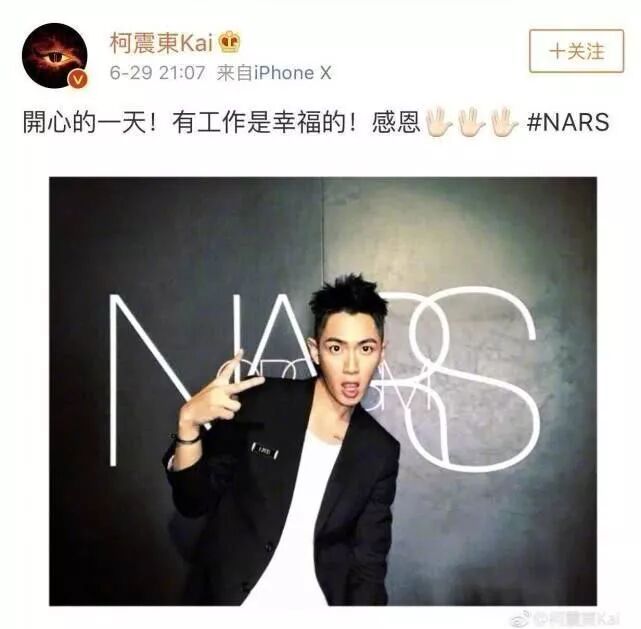 Kai Ko posted photos during the NARS event in Taiwan on Sina Weibo , which sparked heated online discussions. The hashtag "Even a single eye shadow produced by NARS will become part of a drug dealers' gains" was read over 75 million times and reposted 40,000 times.