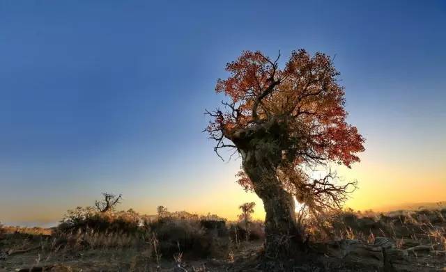 沙漠中的胡杨树,是名副其实的英雄树。一棵胡杨树,能牢固一亩沙地,成片的胡杨林,则能挡住狂风飞沙。