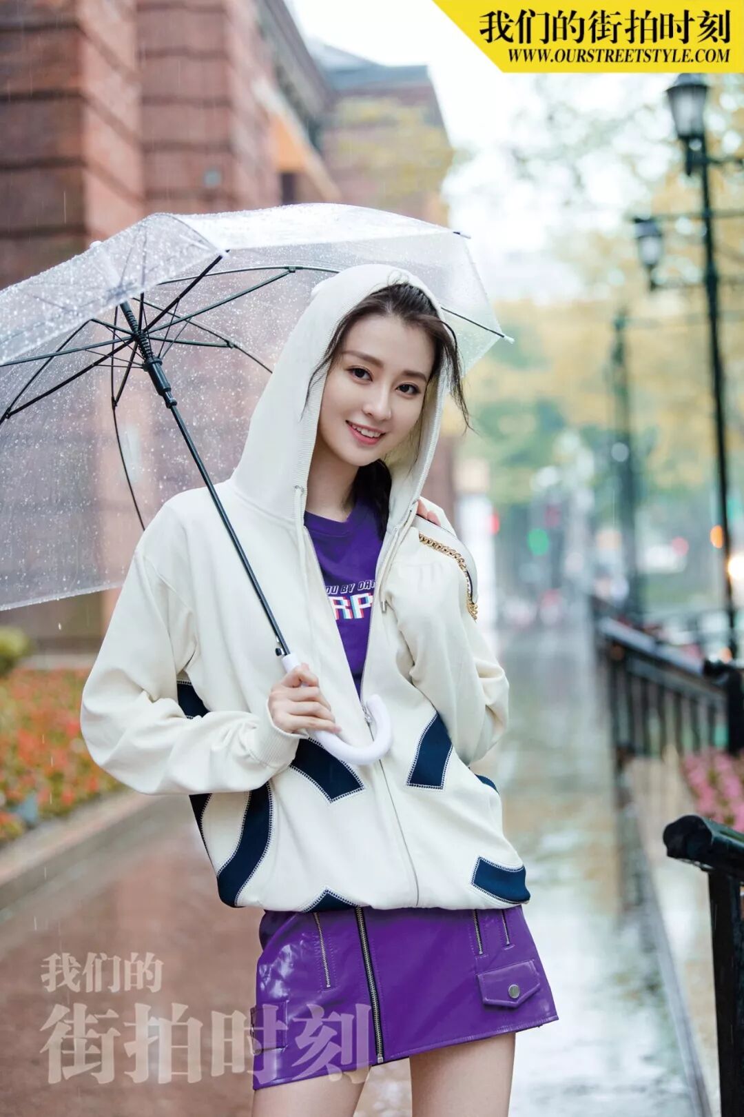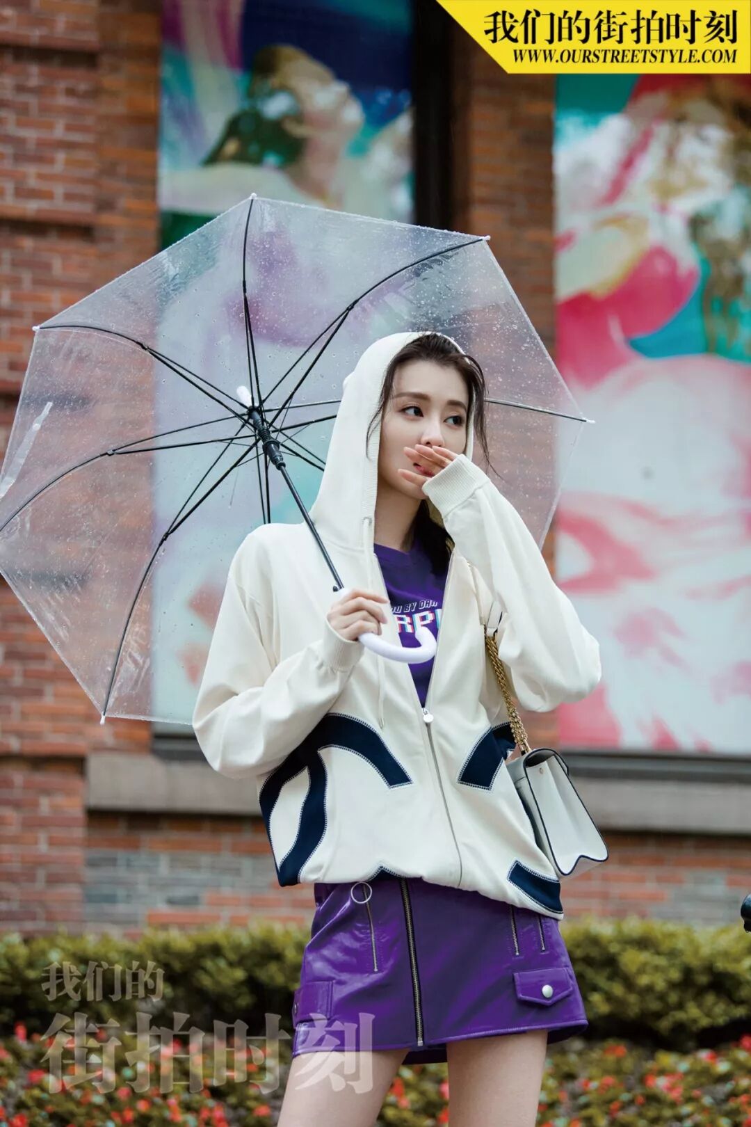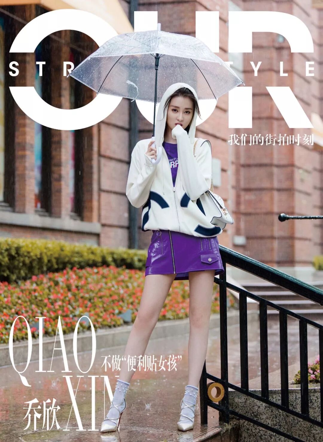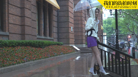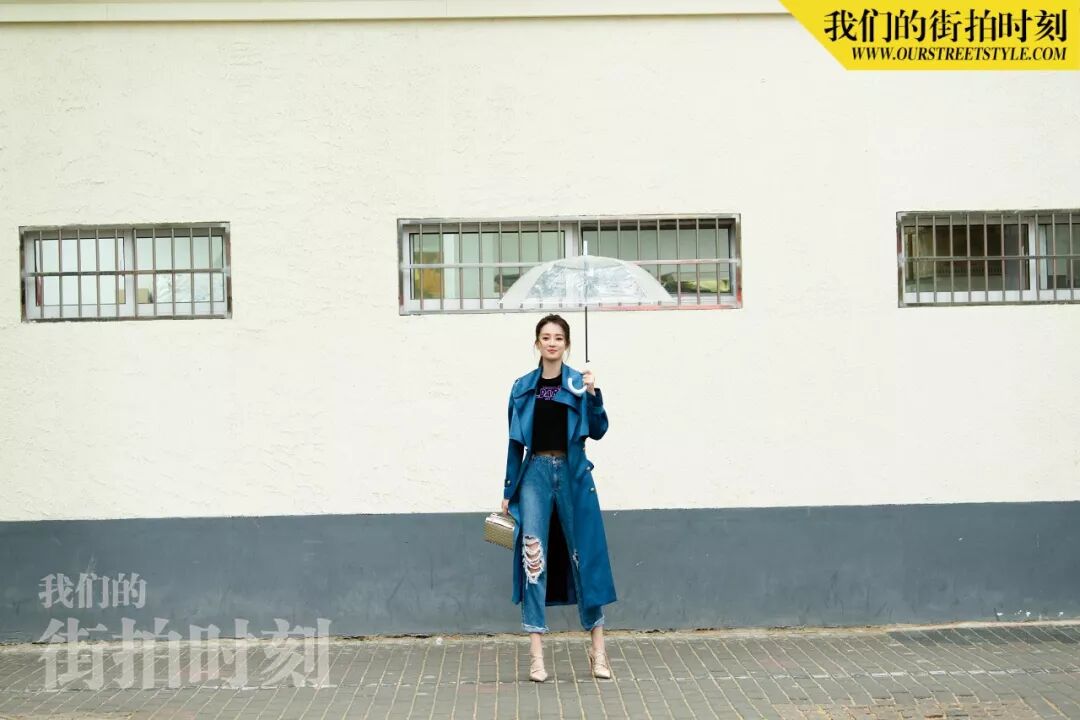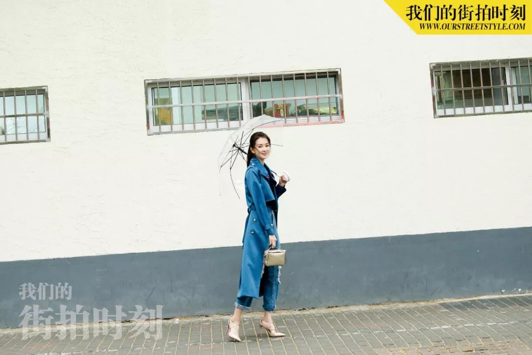 与乔妹子“邂逅”当天,上海的天气不太给力,第一套look还没拍完就下起了雨,但她丝毫不受影响,反而打着透明伞越拍越有感觉~