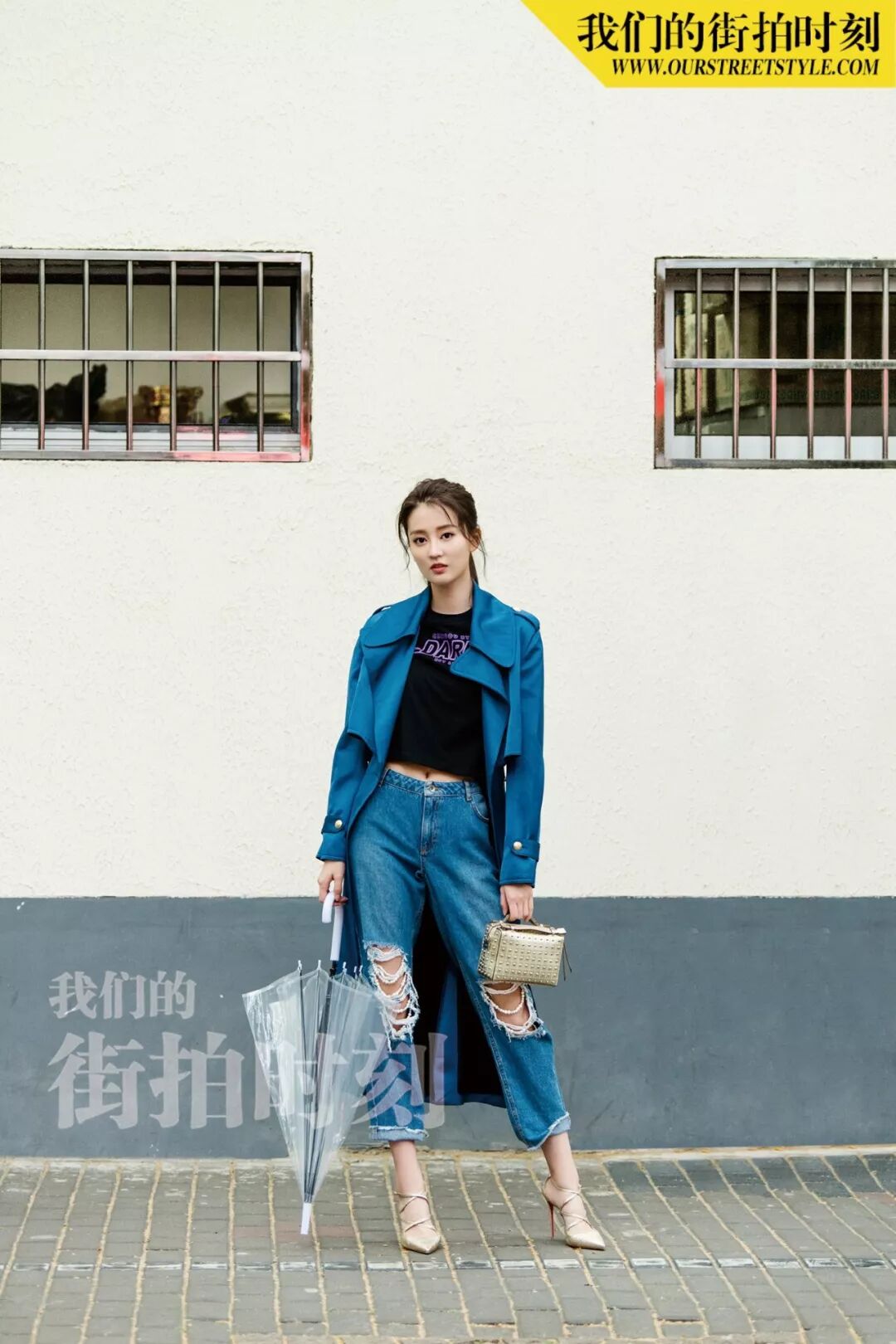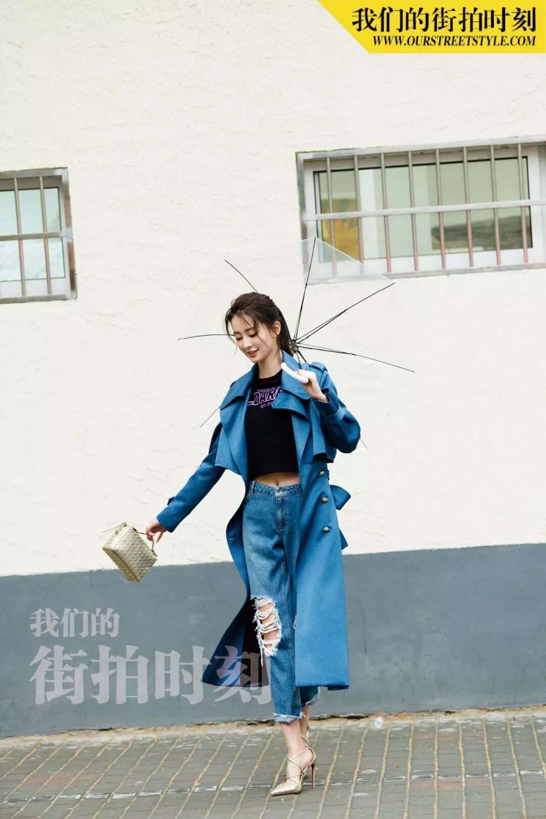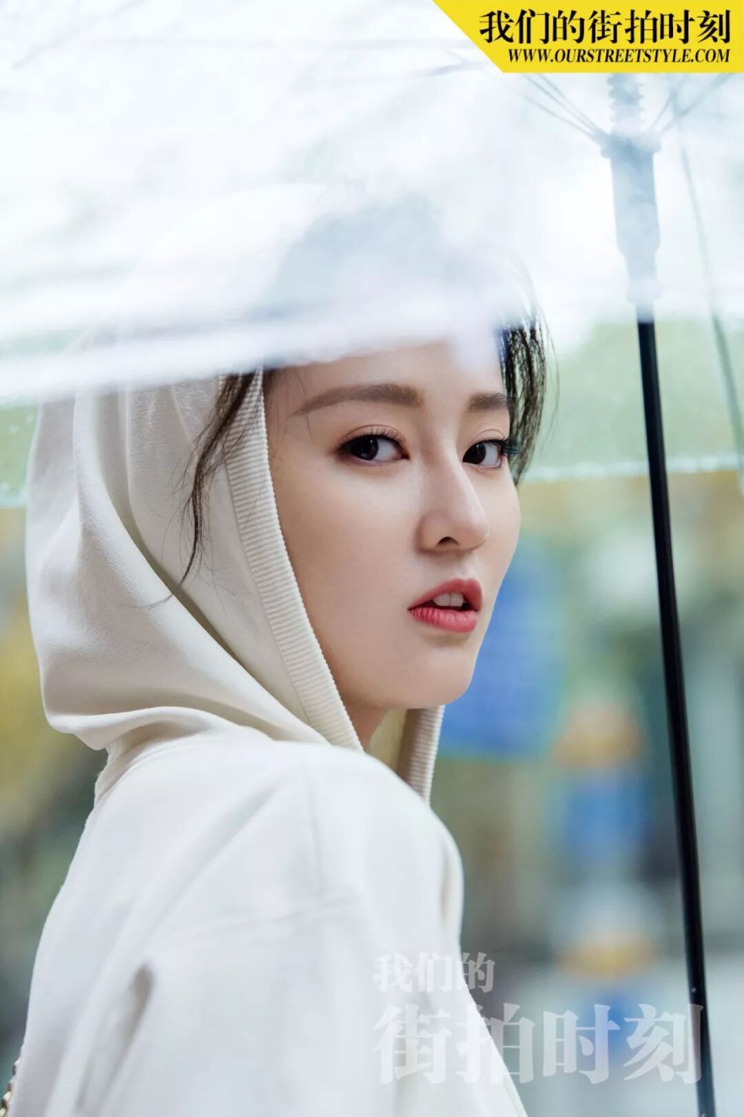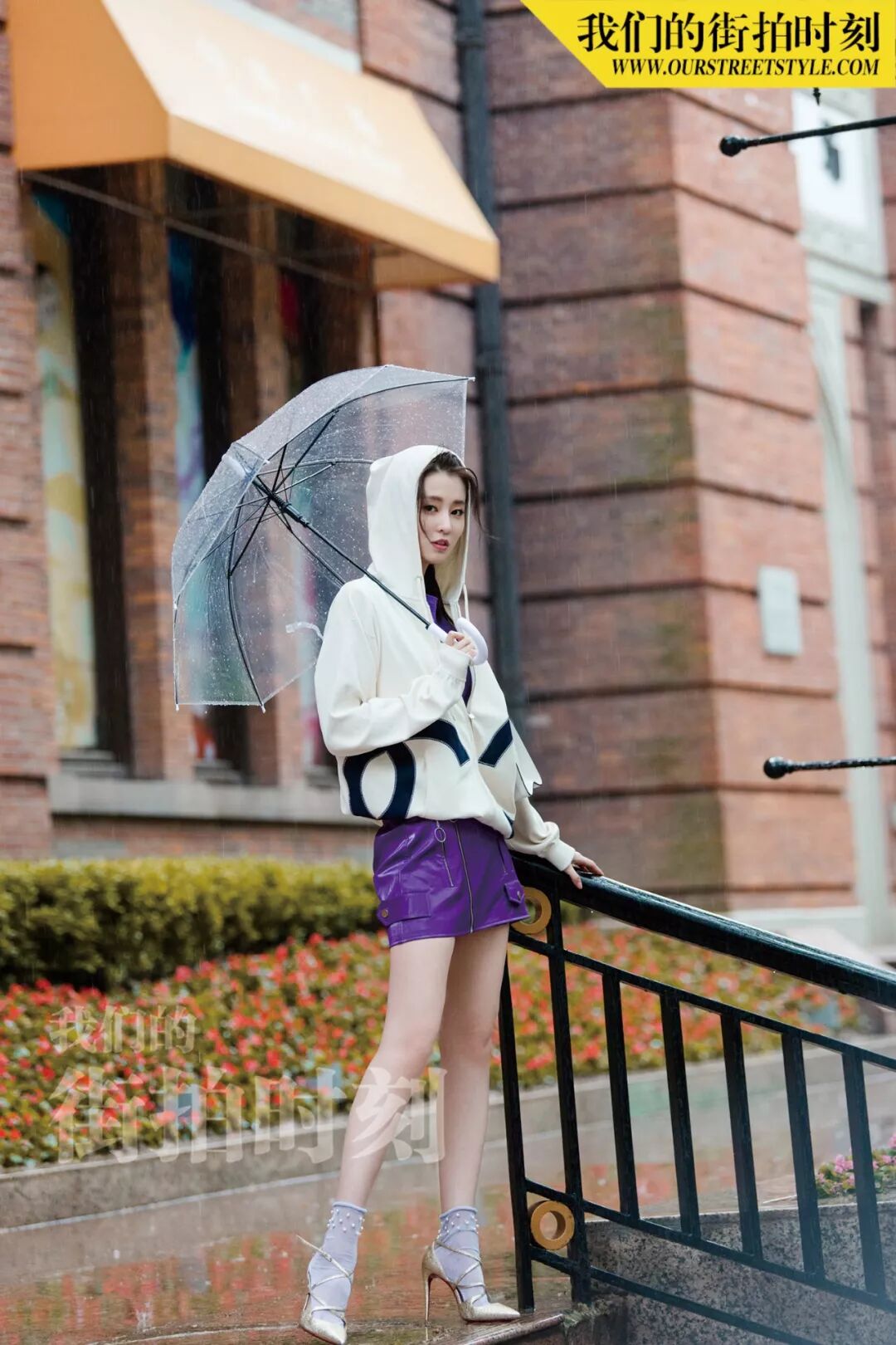 与乔妹子“邂逅”当天,上海的天气不太给力,第一套look还没拍完就下起了雨,但她丝毫不受影响,反而打着透明伞越拍越有感觉~