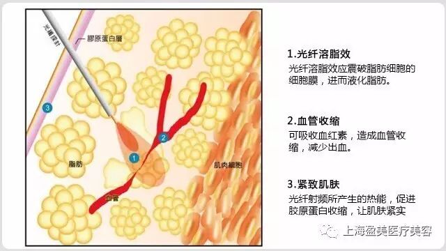 光纤溶脂是采用激光技术的新一代高端设备,运用脉冲激光放射出的高能量,通过细如发丝的光纤头把所需热能准确地传导到需要作用的脂肪细胞及周围组织,使脂肪细胞均匀液化排出,精准的消除多余脂肪组织,并将肌肤紧贴SMAS筋膜层。