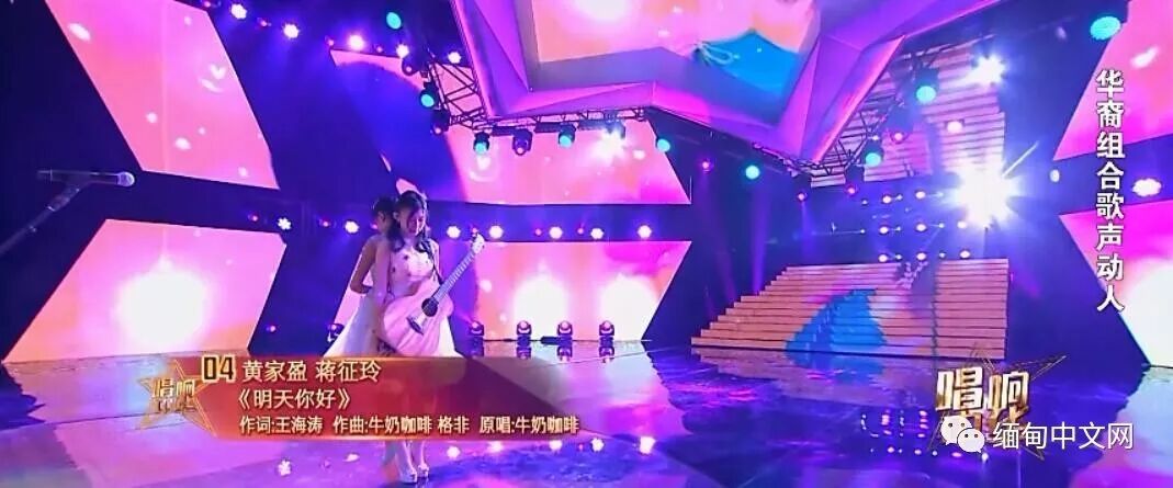 在舞台上我们缅甸华人美女黄家盈,现年21岁,是第三代华裔,她用优异的成绩考入了上海同济大学,凭借实力登上了《唱响中华》舞台为世界华人唱出了心中的歌。演出现场,她用歌声赢得了现场观众和评委阵阵掌声。