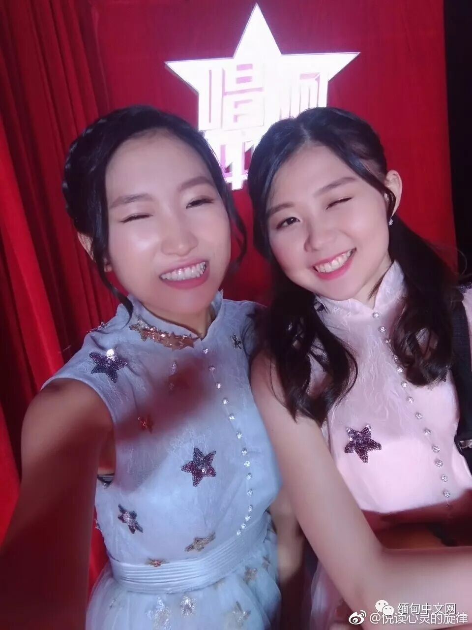 ▲缅甸华裔女孩黄家盈和印尼华裔女孩蒋征玲演唱《明天你好》