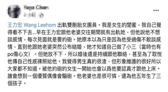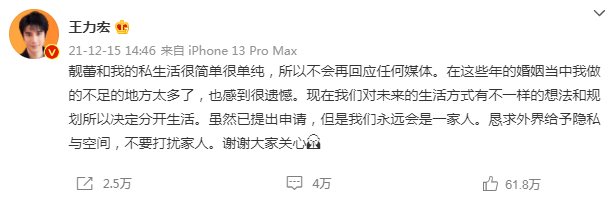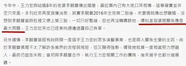 王力宏离婚内幕大反转!被曝形婚、出轨、婆媳矛盾,人设翻车…… 入江之鲸 港台男星 2022-06-24 01:30:14 1173 创作不易,用心坚持,欢迎请BaGua喝几杯爱心咖啡!打赏并支持本文 打赏并删除本文 点击上方“入江之鲸”- 关注并星标我哦~文/拾桦校对/寒寒 今年大概真的是娱乐圈的“离婚元年”吧,明星中的离婚大队一直陆陆续续地官宣,从年头排到了年尾。包括赵丽颖冯绍峰、T丽娅陈思诚、福原爱江宏、大S汪小菲、李湘王岳伦等......正当以为2021年的离婚大潮已经落下帷幕时,再度迎来年度最快反转的明星离婚消息。12月15日一早,有台媒曝出王力宏已和妻子李靓蕾办妥离婚手续。上午,王力宏的经纪人还回应说俩人没有离婚,谁知道下午王力宏本人就亲自发微博承认:已经离婚。确实有些事发突然,毕竟在不久前的十月,还有媒体拍到他们一家五口出游的画面,非常温馨。所以当王力宏承认离婚时,大家都一脸不可置信,他们看起来这么恩爱幸福,为什么还是走到了离婚这一步?官宣离婚不过三天时间,各种传言已经开始满天飞。有的说,这下更印证了王力宏是形婚了,关于他跟某迪的过往,又被一一翻出。还有人匿名爆料,说王力宏官宣结婚前,就出轨了某女子组合的成员。消息传出后,王力宏的经纪公司立马回应,称这些都是“恶意中伤”。该女子组合的官方,也及时发出了否认声明。没有形婚,也不是出轨,甚至不久前还全家合体过,那么突如其来的离婚,又是哪一环出了问题呢?目前网上深扒出他离婚的原因,无非有三个。第一,是刚提到的“形婚”。离婚消息一出,有部分网友又牵扯到了几年前的“宏迪恋”,认为他们每次都把时间卡得严丝合缝。与此同时,也有不少人心疼李靓蕾做了“同妻”,为了把王力宏“掰正”,不惜五年生三子,然而还是留不住他的心。但是更多人认为,当年这一对CP,更像是某迪单方面炒作的CP。传了这么多年的同性恋,王力宏其实早有明确表态:自己不喜欢同性。去年,王力宏的公司更是再次怒斥了这些谣言,子虚乌有。第二、三点,是传说中的“婆媳矛盾”,以及李靓蕾干涉王力宏的事业,弄得双方不愉快。从王力宏和李靓蕾分享在社交平台的照片来看,确实很少婆媳同框的照片。不过,对于在国外长大的俩人来说,婆媳之间的联系没有过于亲密,也许是件很平常的事。再者,王力宏跟妈妈的关系非常好,早期,妈妈也是帮忙打理王力宏事业的主心骨,所以婚后,跟李靓蕾出现事业上的权力争夺,也许是婆媳矛盾中的根源。毕竟,哪个豪门没有利益纠纷呢?但是,即便这场婚姻不是形婚,没有婆媳矛盾,也没有利益纠纷,也很难长久。因为,嫁给王力宏,并不是一件幸福的事。当年,王力宏官宣恋情时,一时之间,全世界都在嫉妒和羡慕这个叫李靓蕾的女孩子。很快,就有网友扒出,李靓蕾不仅是高材生,跟王力宏两家还是世交,王力宏大她十岁,算是看着她从小长大。门当户对,同样优秀的两个人结合,堪称完美。婚后,她被王力宏说服,选择放弃读博,把更多的精力放到家庭上。五年时间,李靓蕾生下了两女一子,成为了众人眼中的“人生赢家”。五年三胎,也就意味着这五年期间,她不断地处在怀孕、生产、哺乳的循环中,无论是是生理还是心理,都是一场异常伟大的挑战。除此之外,还有人发现,她早已低调地从夫姓,证件名字改成了“王靓蕾”。神奇的是,无论是五年三胎,还是改夫姓,她都未遭到很多吐槽,可能因为在众人眼中,王力宏是完美的男人,这一切的付出,似乎太值得。前几年,这对夫妻之间的互动,也相当甜蜜。他们会在演唱会上大方亲吻秀恩爱。在微博上,王力宏会“委屈”地问:身材要练成怎样,老婆才会注意我?而李靓蕾也曾晒出一些王力宏陪伴孩子沉浸式玩耍的日常。但是恩爱过后,两人开始疏远。较早之前,有网友也发现了蛛丝马迹:这对夫妻,在社交平台上,已经两年没有互动了,分享的日常中也不再有对方。冰冻三尺,非一日之寒。原来眼前这个才华和相貌兼备的白马王子,看似事事完美,唯独在做“丈夫”这件事上,也许连“合格”都算不上。王力宏对音乐艺术的追求,高于对生活的一切追求。在拍戏的间隙,他没有任何的娱乐,一切的空闲时间,都用来写音乐,偶尔健身解压。甚至为了研发音乐教育相关的APP,他闭关自学代码,废寝忘食,不修边幅。曾经有人这样形容过王力宏:年入过亿,却家徒四壁。他可以一件衣服穿十年,一个行李箱用十年,袜子破洞了照常穿,甚至也可以开一辆将近报废的二手车用来代步。除了音乐之外,物质需求和生活享受,对他可有可无。不可否认,在专业精神上,他真的无可挑剔。但也因此造就了一些困惑:当他沉迷在音乐世界的情绪中时,如果马上回到生活中,他很难把情绪抽离出来。王力宏曾经自曝过,自己在演唱会过后,需要一段时间的“戒断反应”。“其实我在家里常常是这样,我曾经沮丧到躺在地上好几天都起不来,后来我才知道为什么。因为情绪飞得越高,会摔得越重。台上的光鲜亮丽,跟所有人一起嗨翻天,这种兴奋,也有大家看不到的反应。下了舞台的那刹那,就是戒断症状的开始,抽离万人,剩下一人的剧烈反差。那个时候的安静,是最震耳的,情绪的云霄飞车,每天在两个极端,上下,上下,上下。而且能说话的人也越来越少了,只有信仰可以帮助我。我就一直祷告......一直祷告......一直祷告......”这种情绪的反差,也开始影响到了他