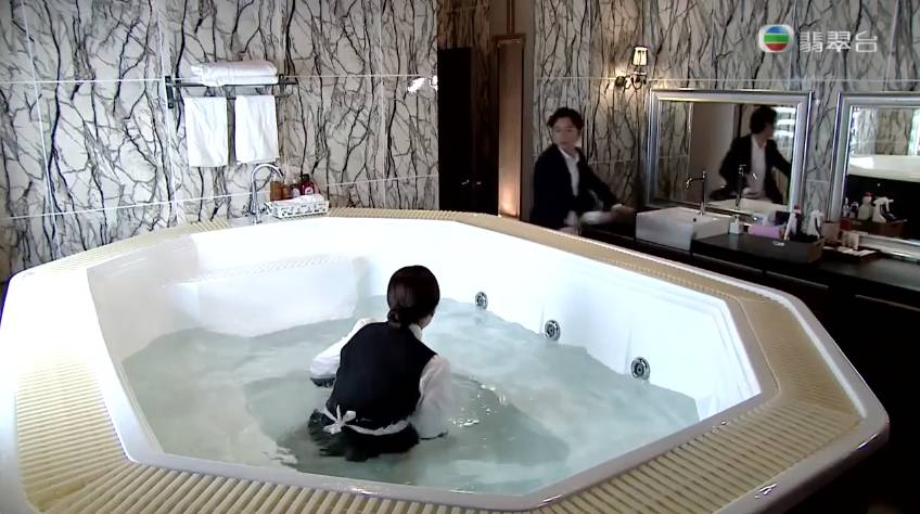 《全职没女 》由陈滢上演一幕湿身色诱张振朗,看得观众哗哗声,而陈滢BB在剧中再次出击,这次移师酒店浴缸,穿女仆装又单眼又咬唇!一时成为城中热话!