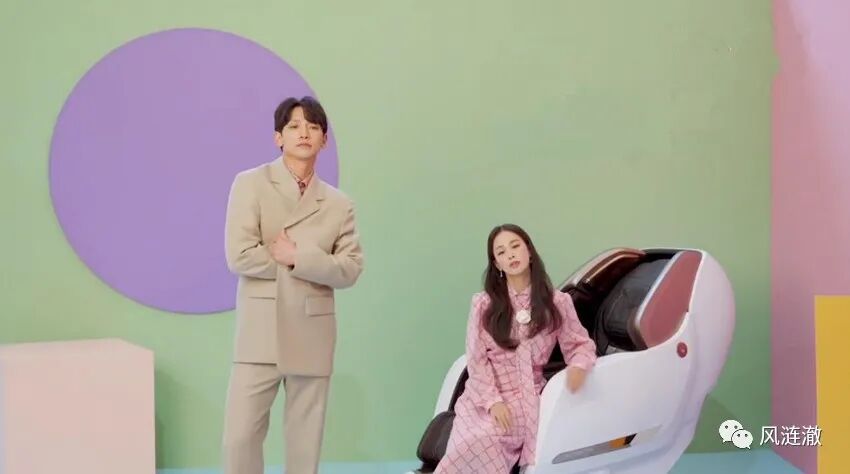 在拍摄间隙,Rain立马化身现场气氛制造师,说笑话逗金泰熙笑。