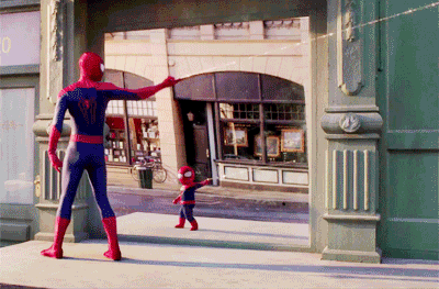 另一个已经变成“中年大叔”,稍显油腻的皮特帕克的世界,则是标准的美漫风格,代表着“老套”——