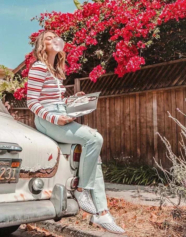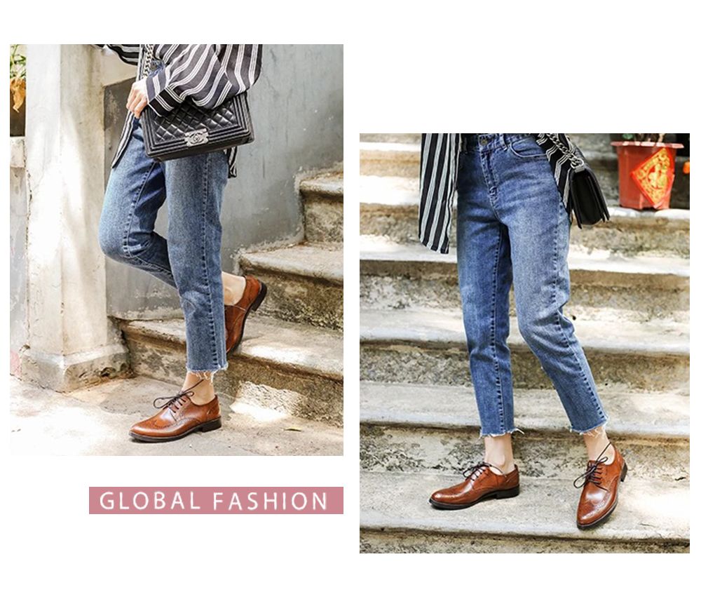 牛仔外套跟牛津鞋也很搭,牛津鞋的文艺气质正好能中和掉牛仔的休闲感,减龄又率性。
