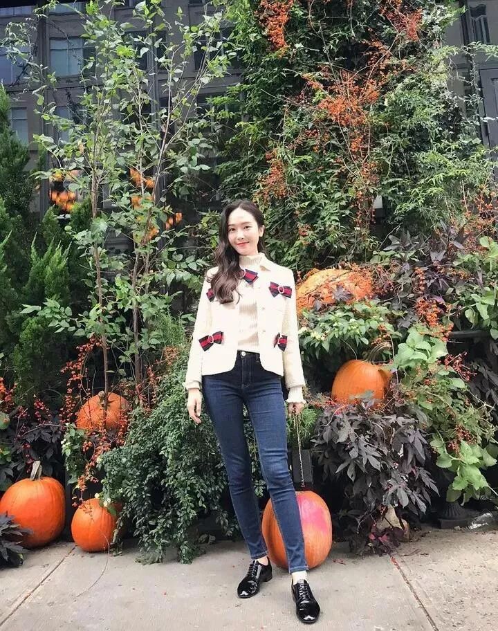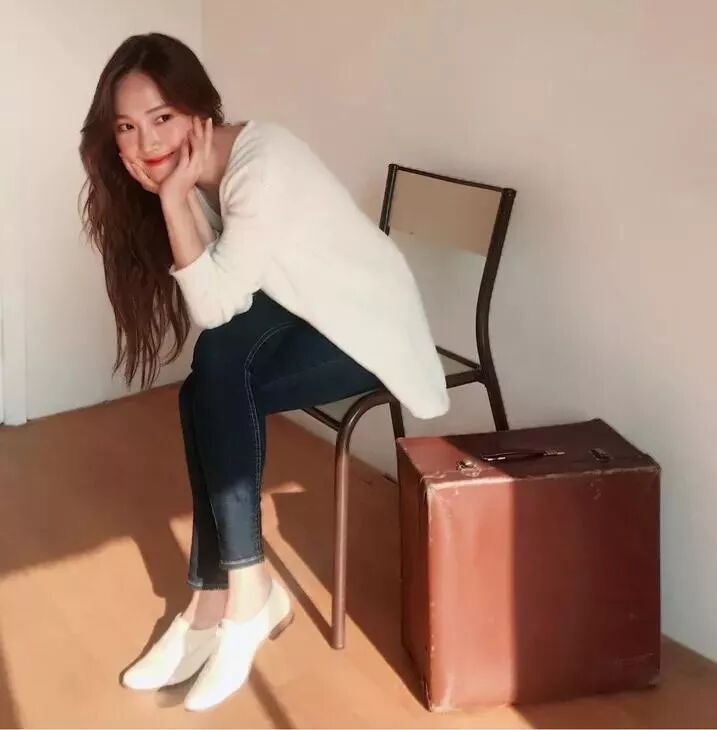 除了宋茜,Jessica 郑秀妍也很爱穿牛津鞋,只不过她的风格更加淑女甜美。白色牛津鞋正好呼应白色毛衣,简约清爽,自带舒适的时髦感。