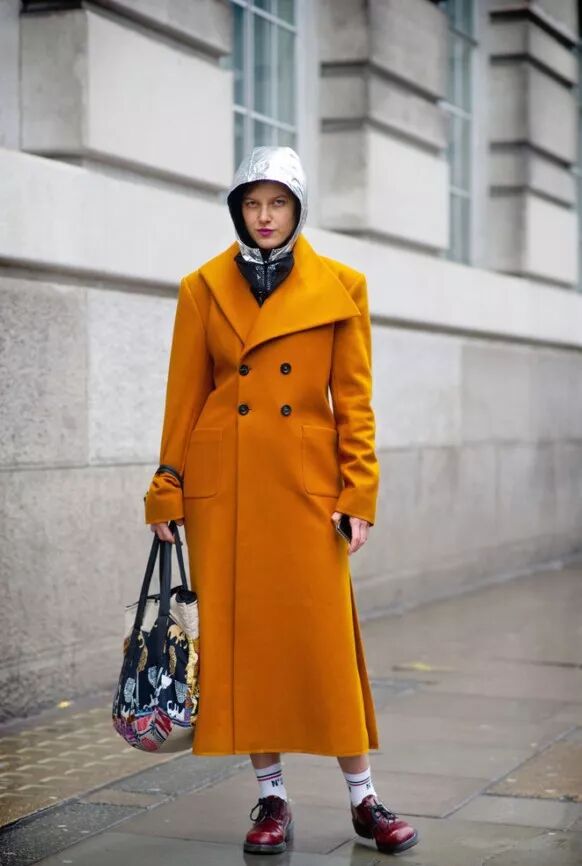 长款大衣搭配牛津鞋,英姿飒爽,潇洒得很。