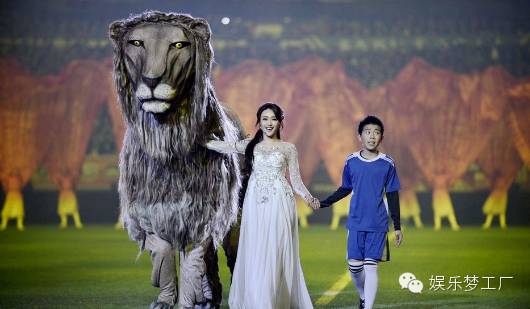 3月5日在南京的中超开幕式上,大美人陈冰可是把“水果姐”的霸气复制升级,来了一个中国版的“美女与野兽”。