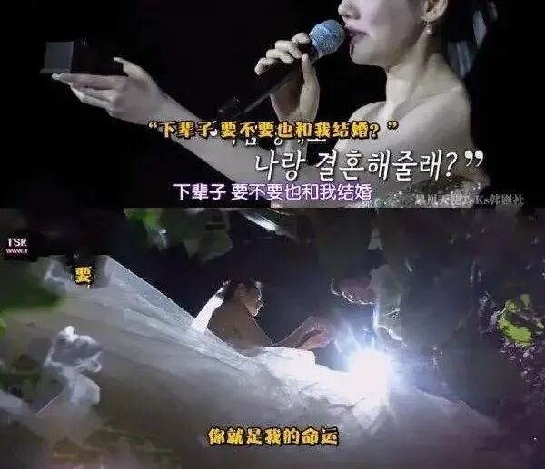 或许是因为童年的经历,秋瓷炫把于晓光几乎当成了自己的精神寄托,40岁的她还在婚礼上单膝下跪,向于晓光求婚: