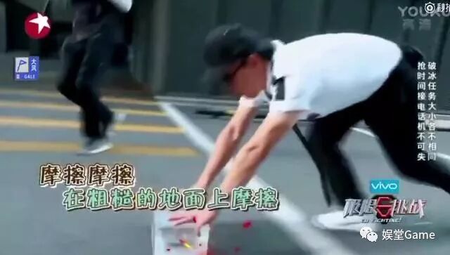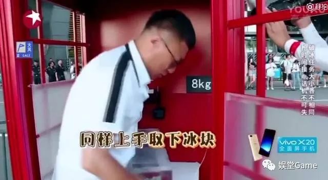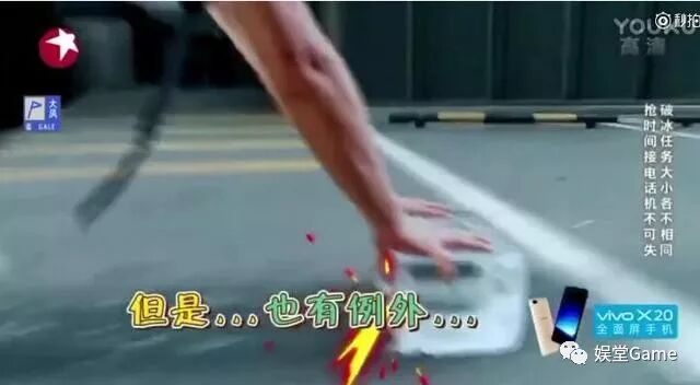 再来看看罗志祥、王迅和黄磊,几乎都是以一种不屑的表情看向镜头,然后以迅雷不及掩耳之势将冰块摔碎,从中拿到手机完成任务。