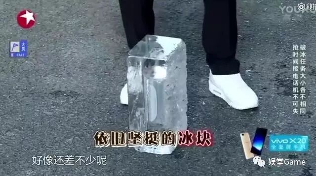 言归正传,当每个嘉宾在任务点拿到冰块之后,除了黄渤一人在细细观察并思考如何除冰以外,其余四人统统都是不假思索去摔冰。