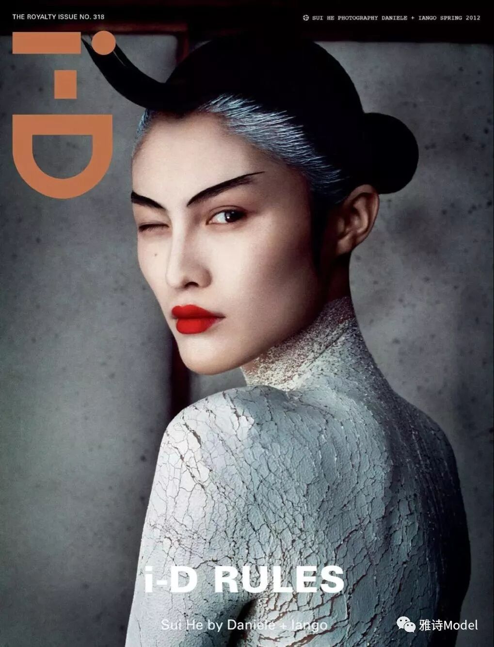 2012年的这封《i-D》封面让我们见识到了何穗不俗的表现力。对于商业模特与high fashion模特这两个角色间的切换,何穗已经游刃有余。