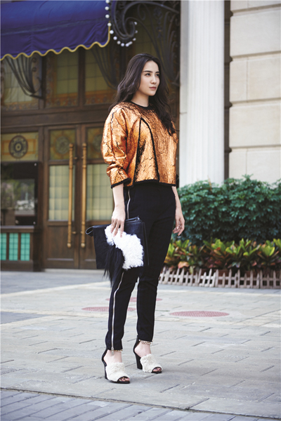 金色被冠以“土豪”这个身份后,仿佛一切有关金色的单品都被隔离出了时尚。但宋佳告诉你,没有什么可以阻挡, 我对金色的向往!金色裂纹羊绒上衣,轻松舒适,街头式的玩趣态度格外抢眼。羊绒手包和足尖上的羊绒,和谐呼应;黑色九分裤尽显运动风。恭喜宋佳成功为金色正名!
