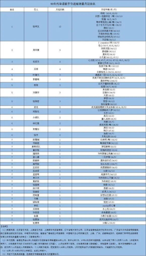 任贤齐,在《心太软》走红后没多久,就排在了整个榜单的第三名,2张专辑,8次月冠,其中《心太软》获得6次月冠。