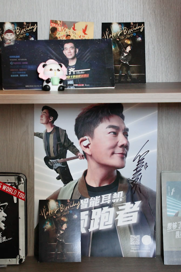 这位铁粉和大多数女生一样,有一个歌词本专门摘抄任贤齐的歌曲,有一面柜子装的都是任贤齐的专辑、横幅以及周边产品,一摞摞前排的演唱会门票,一张张往返的高铁票,都是喜欢一个人最美的样子。