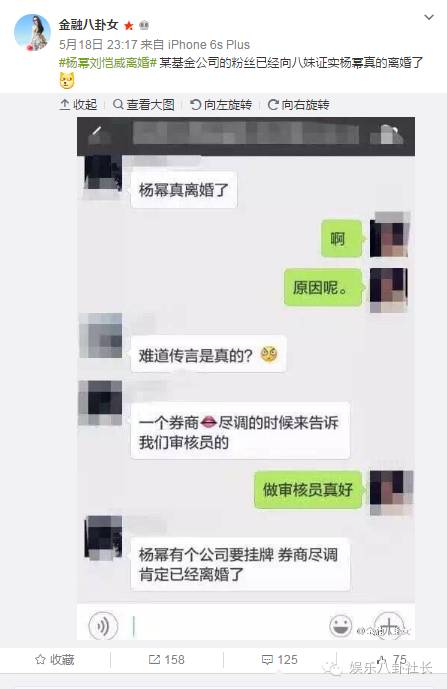 幂幂和刘恺威二人已经N次被传婚变,据说这次是真的哦~~~(这次是金融界透露出来的消息),有消息称某金融群的爆料截图在网上疯传,群内有金融圈人士称杨幂公司要挂牌上市,有券商对股东做尽职调查时发现了她是离婚的状态,有木有很惊讶?