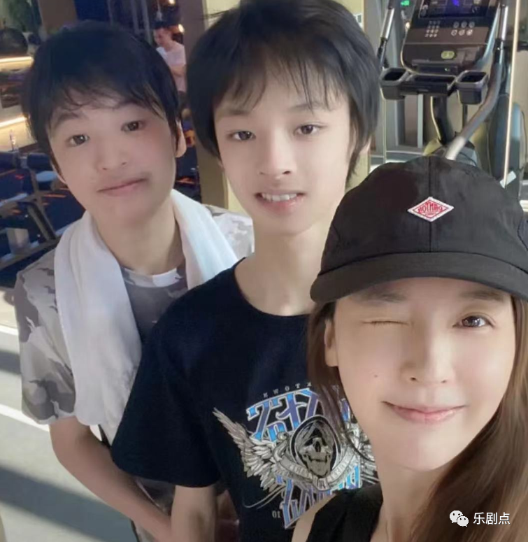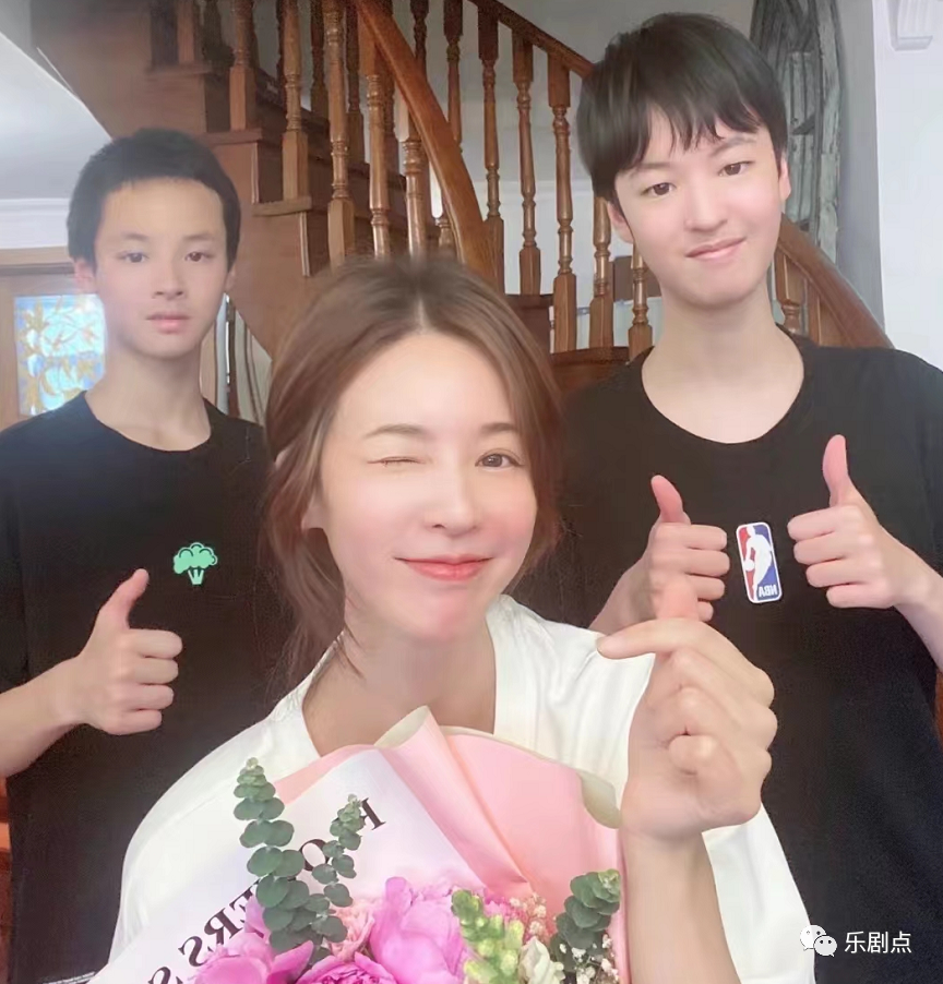 罕见露面的2个儿子都长大了,他们暴风式长高,身高已彻底超越妈妈了,吴佳尼跟他们合影时,他们都有微微侧身迁就。