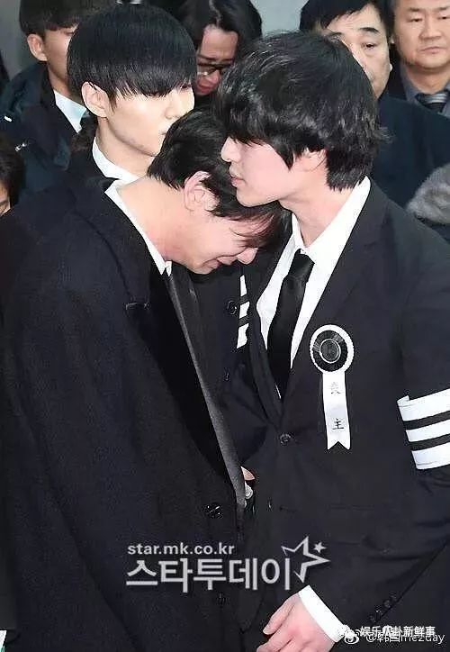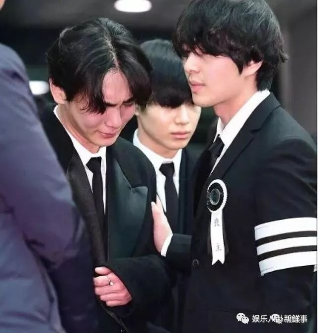 SHINee成员泰民也是面无血色,悲痛欲绝。