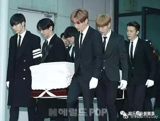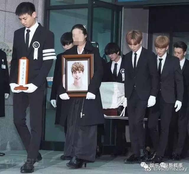 另外三名成员温流、KEY、泰民和SJ成员利特、银赫、东海则护送钟铉的灵柩上灵车。