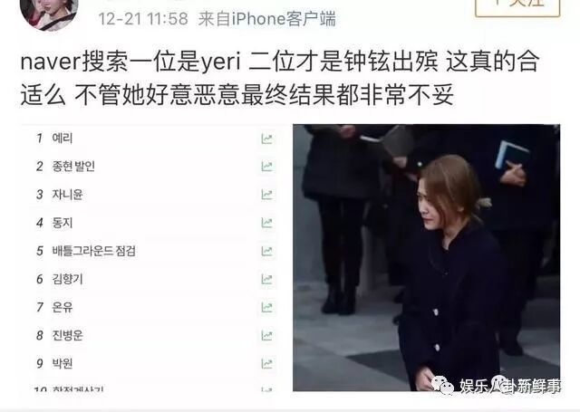 Yeri的行为在韩国也引发巨大争议,现在韩国的Naver实时搜索第一名是Yeri,第二名才是钟铉。